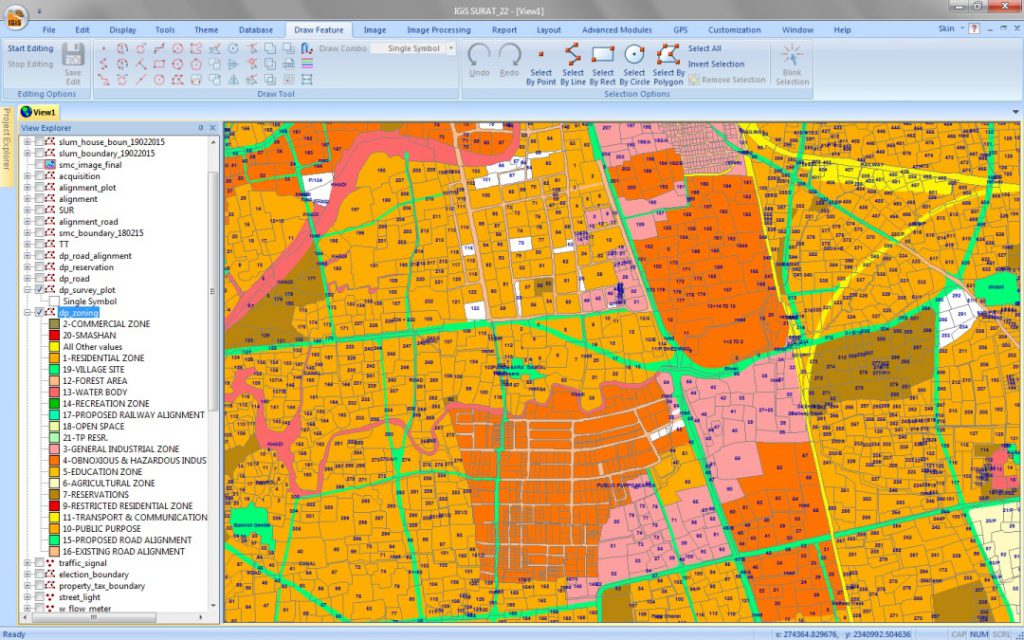 A geographic information system (GIS) map displays data in a visual format. It is essentially a database combined with spatial or geographic information. Plotting information on top of a map can reveal data relationships that would otherwise be difficult to see.